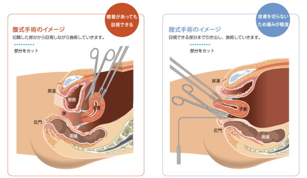 最近ではお腹を切らない膣式手術も広く行われるようになっています。