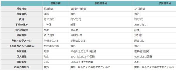 一口に手術と言ってもその方法はさまざまで、筋腫の場所や大きさ、数などによって制限があります。